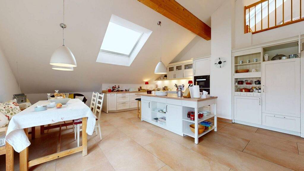 Auf ca. 205 m² Wohnfläche präsentiert sich diese außergewöhnliche Maisonette-Dachgeschosswohnung (zum Teil bis zu ca. 5 m hohe Wände) als harmonische Verbindung von modernem Wohnkomfort und historischem Charme. Das Dachgeschoss eines historischen Gebäudes wurde 2013 vollständig neu errichtet und überzeugt durch offene Raumstrukturen, lichtdurchflutete Wohnbereiche und sorgfältig integrierte Sichtbalken, die jedem Raum Wärme und Persönlichkeit verleihen.