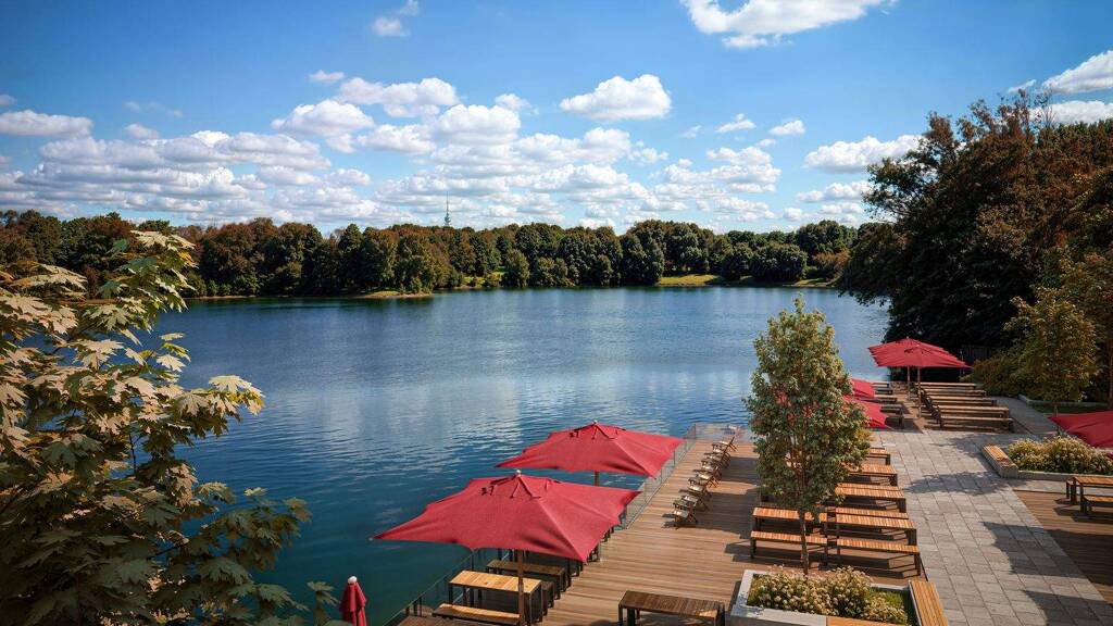Direktlage am Lerchenauer See: 3.876 m² Ufergrundstück mit Baugenehmigung für Hotel mit Biergarten