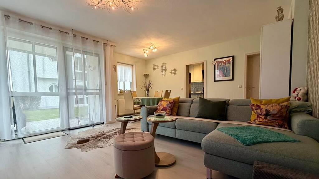 Ausstattung & Besonderheiten: - 3 Zimmer - Küche - Badezimmer mit WC, Badewanne, Dusche, zwei Waschbecken - Separates WC - 3 Terrassen und Gartenmitbenutzung - Ruhige Erdgeschosslage am Ortsrand - Abstellraum innerhalb der Wohnung - Kellerraum - Gemeinschaftliche Waschküche - 2 PKW Stellplätze inklusive