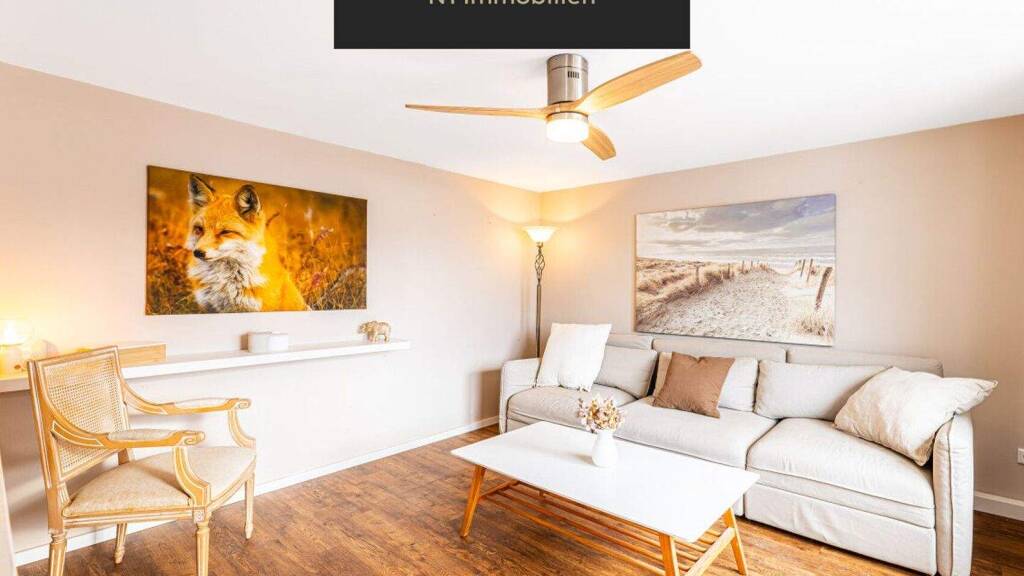 Das lichtdurchflutete Wohnzimmer lädt dazu ein, zusammenzukommen, zu lachen, zu entspannen. Große Fenster schenken Weite und verbinden Innen und Außen auf harmonische Weise.