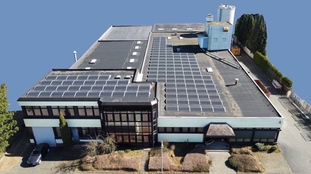 Industriehalle mit Bürotrakt, PV-Anlage und moderner Holzheizung