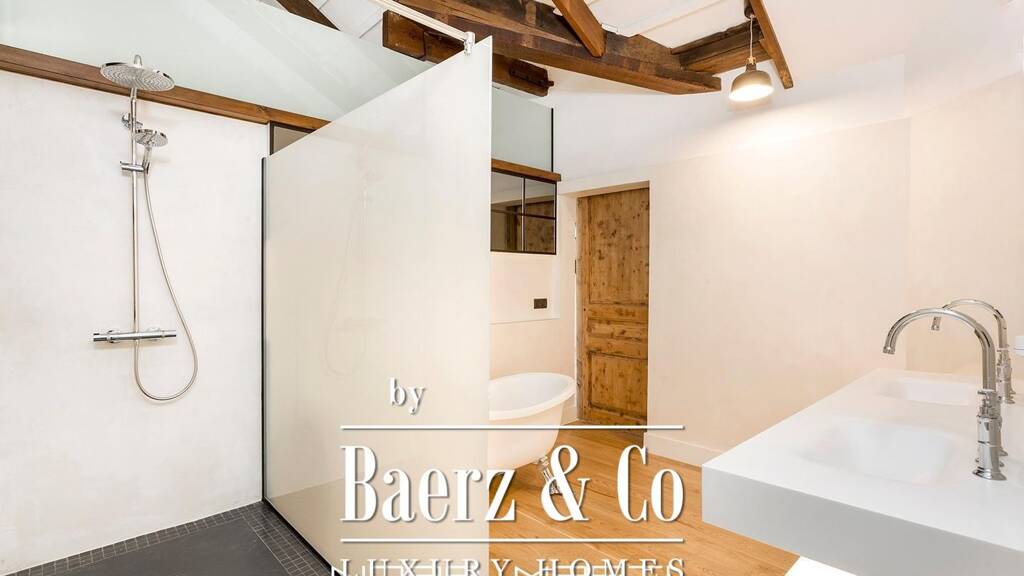 the heart of the home gracefully opens onto a spacious living-dining room, where light dances through large windows and is accessed through an industrial-style sliding door that harmonizes past and present. the bright, refined kitchen presents itself as a gathering space, dominated by a large island and equipped with high-end appliances that invite culinary delight. a guest toilet completes this floor with discreet elegance.