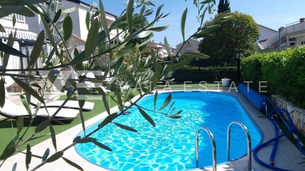 Immobilien Insel Krk - im Zentrum von Malinska zu verkaufen ist ein attraktives Einfamilienhaus auf drei Etagen mit sechs wunderschön eingerichteten Wohnungen, verteilt auf 400 m2, die zur touristischen Vermietung bestimmt sind. Das Haus wurde 2001 erbaut und 2019 renoviert. Im Erdgeschoss befinden sich ein komfortables Apartment mit zwei Schlafzimmern, ein Studio-Apartment, ein Abstellraum und ein Raum, der als Waschküche dient. In der ersten Etage befinden sich zwei weitere Apartments mit zwei Schlafzimmern und einem Balkon von ca. 60 m2. In der zweiten Etage oder im Dachgeschoss befinden sich zwei weitere Apartments mit einem Schlafzimmer. Jedes Apartment ist voll möbliert und klimatisiert und verfügt über eine Küche mit Essbereich, ein Wohnzimmer, ein Bad, komfortable Schlafzimmer und einen Balkon mit Meerblick. Der angelegte Garten von 704 m2 verfügt über einen gemeinsamen Pool von 7 x 3,5 m2 mit Liegewiese, Sommerküche mit Grill und Terrasse.