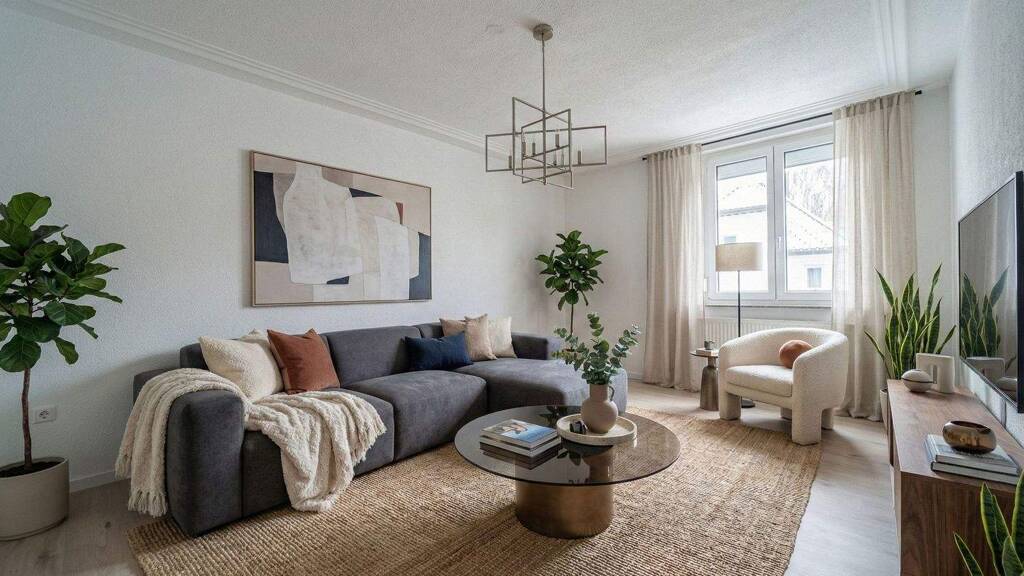 Diese leerstehende Wohnung im ersten Obergeschoss bietet rund 62 m² Wohnfläche mit durchdachter Raumaufteilung. Drei Zimmer - ideal aufgeteilt in einen Wohnbereich, ein Schlafzimmer und ein weiteres Zimmer, das flexibel genutzt werden kann.