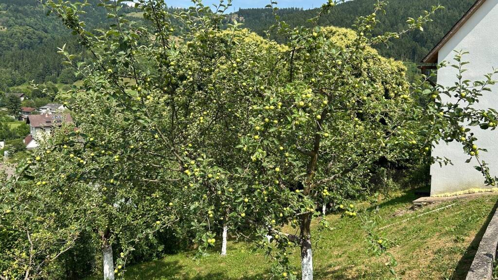 Das 1.065 m² große Grundstück lädt mit viel Platz zum Spielen, Entspannen oder Gärtnern ein. Die leichte Hanglage garantiert einen freien Blick ins Grüne.