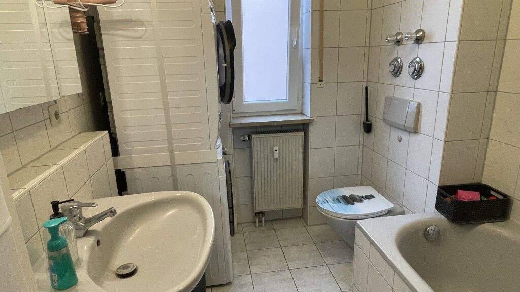 Die beiden Zimmer lassen sich ideal als Schlafzimmer und Homeoffice einrichten. Das Tageslicht-Bad ist modern gefliest und verfĂĽgt ĂĽber eine Badewanne.