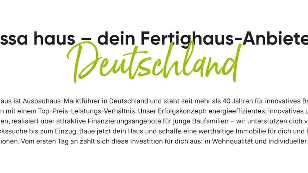 + über 40 Jahre Erfahrung + über 35.000 gebaute Häuser und zufriedene Baufamilien + innovative Top-Architektur + KfW Energieeffizienzhaus 55 + das herausragende massa-Preis-Leistungs-Verhältnis + tolle Hausauswahl, über 60 verschiedene Haustypen + Fenster mit 3-fach Verglasung + 5 Jahre Gesamtgarantie nach BGB + TÜV-Siegel Toxproof für gesundes Wohnen + kompetente Hausberatung in 75 Musterhäusern in ganz Deutschland + Beratung vor Ort + Grundstücksservice + unabhängige externe Finanzierungsberatung + schnelle Bauzeiten, kompetente Baubetreuung + gesundes Wohnen und zertifizierte Top-Qualität vom Ausbauhaus-Marktführer + Made in Germany und vieles mehr