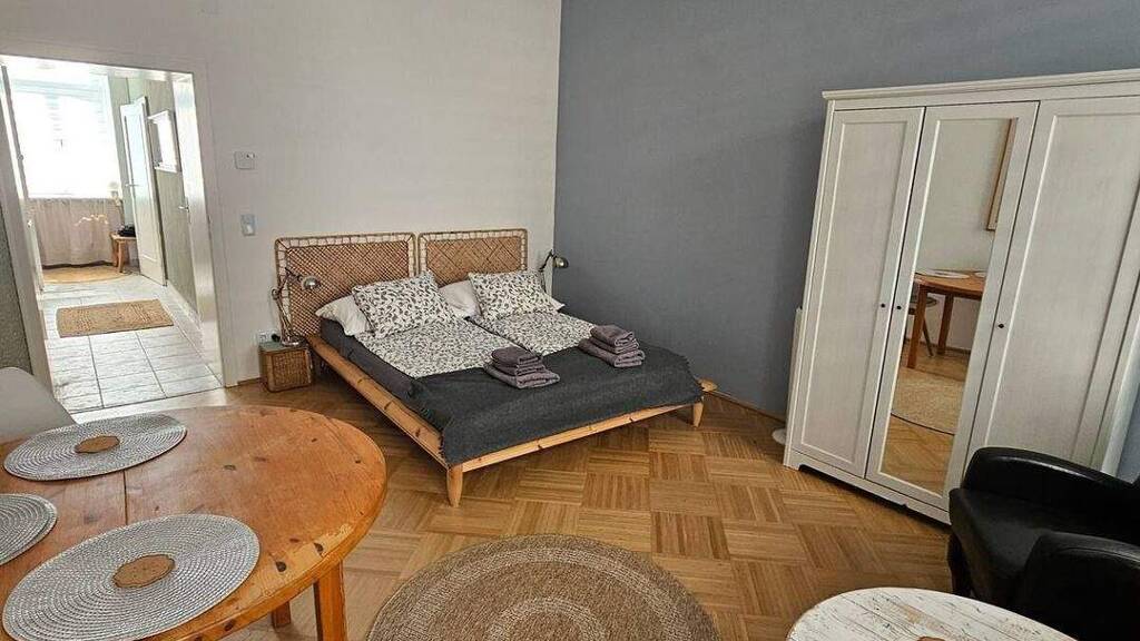 Diese gemütliche 2-Zimmer-Wohnung liegt im belebten 16. Bezirk, überzeugt jedoch durch ihre ruhige Lage in einer Seitenstraße. Sie bietet ein angenehmes Wohnambiente mit einer durchdachten Raumaufteilung. Das helle Wohn- und Schlafzimmer ist mit einem bequemen Doppelbett, einem großen Schrank mit viel Stauraum, einem Esstisch mit zwei Stühlen sowie einem TV ausgestattet. Das zweite Zimmer verfügt über eine Schlafcouch und eine Kleiderstange und kann flexibel als Gäste- oder Arbeitszimmer genutzt werden.