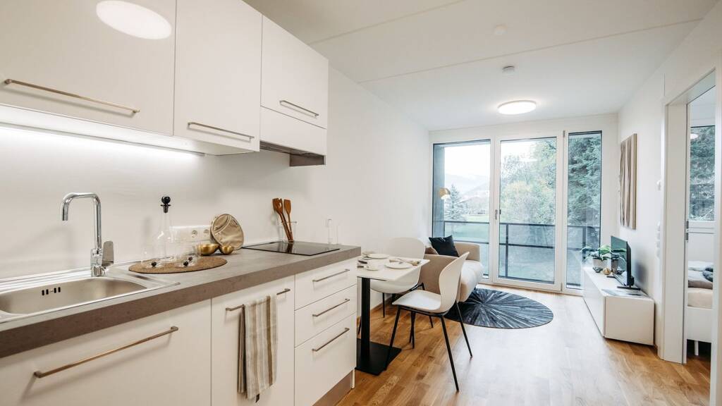 In der Miete sind bereits hochwertige Designermöbel, ein Waschtrockner, Smart-TV und WLAN enthalten.