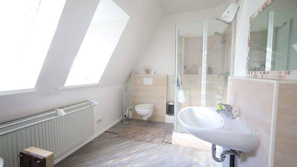 In den oberen Etagen befinden sich zwei geräumige Wohnungen mit einer Gesamtwohnfläche von ca. 200 m², die derzeit als Studentenwohnungen genutzt werden. Insgesamt stehen sieben helle und gut geschnittene Zimmer zur Verfügung, ergänzt durch gemeinschaftlich genutzte Küchen- und Sanitärbereiche. Die Wohnungen wurden im Jahr 2012 modernisiert und präsentieren sich in einem zeitgemäßen Zustand. Ein Highlight stellt die großzügige Dachterrasse dar, die zusätzlichen Wohnkomfort bietet und gerade in innerstädtischer Lage einen hohen Mehrwert schafft.