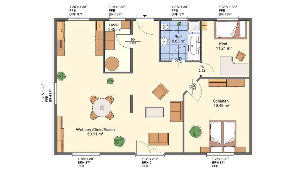 Der Preis bezieht sich auf den beigefügten Grundriss (inklusive Grundstück). Selbstverständlich können wir den Grundriss ganz nach Ihren Wünschen und Bedürfnissen anpassen.
