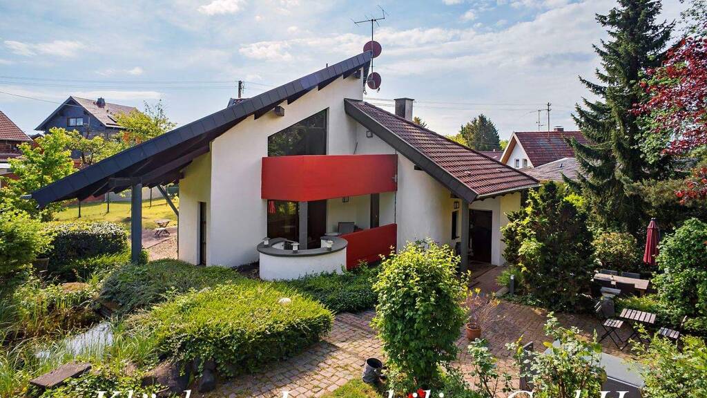 Dieses eindrucksvolle Architektenhaus wurde 1984 in massiver Bauweise auf einem ca. 3.500 m² großem Grundstück errichtet.