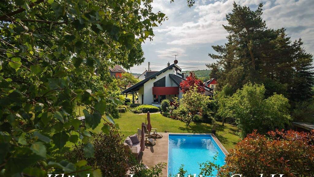 Herausragend ist der individuelle Charakter des Hauses und die herrliche Ruhe im sonnigen und parkartigen Garten mit vielen Oasen, traumhafter Poolanlage und angrenzendem Wald.