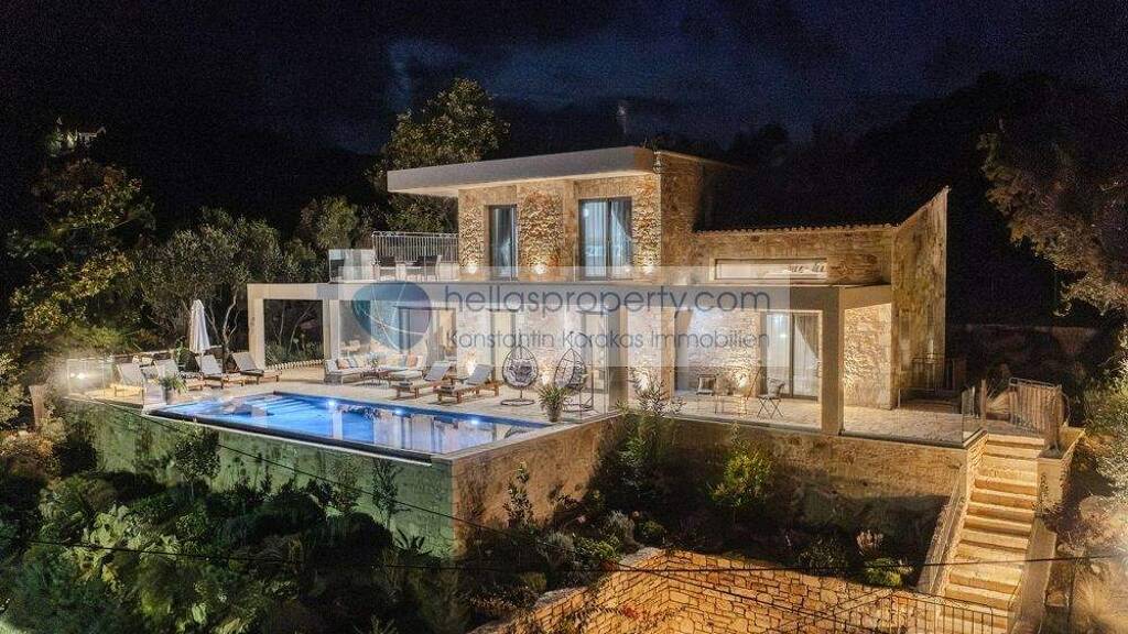 Das Anwesen liegt auf einem 950 m² großen Grundstück und vereint Natursteinelemente mit modernem Design und allen zeitgemäßen Annehmlichkeiten.
