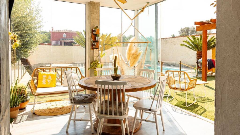 Die Küche mit Bürocharakter lädt zum bequemen und funktionellen Kochen ein. Das Hauptwohnzimmer mit seinem Kamin schafft eine warme und gemütliche Atmosphäre, ideal für die Wintermonate, während der Wintergarten einen vielseitigen Raum voller natürlichem Licht bietet, der das Innere mit dem Äußeren verbindet.