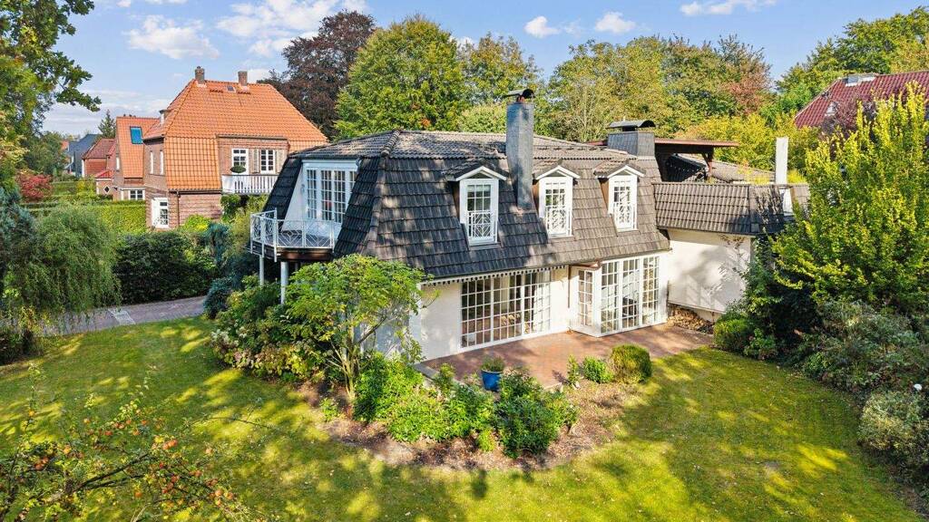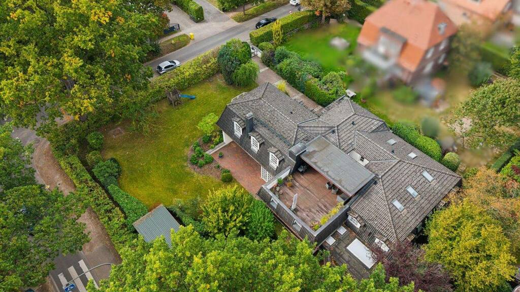 Nahe des Ortskerns wurde diese exklusive Mansarddachvilla auf einem ca. 1.392 m² großzügigen, schön eingewachsenen Eckgrundstück errichtet. Der große Garten ist liebevoll angelegt; das Grundstück ist zudem komplett eingezäunt.
