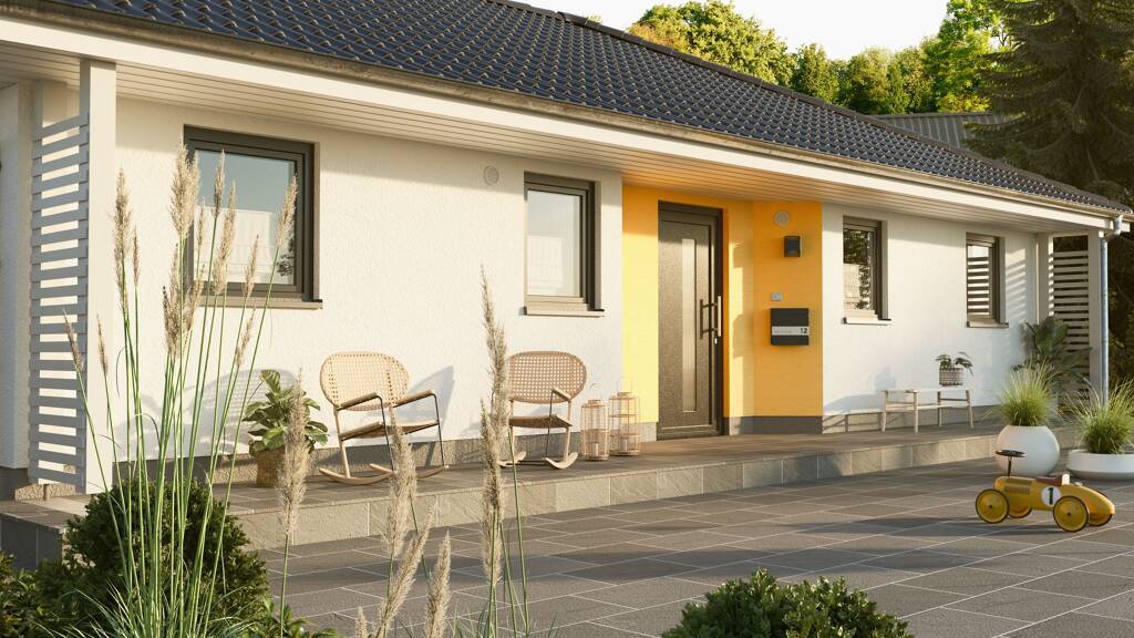 Das geräumige Schlafzimmer sowie zwei weitere Zimmer und das Bad runden das Raumangebot im Winkelbungalow 108 ab. Besonders schön, Sie sind stets mit wenigen Schritten in Ihrem Garten. Genießen Sie Ihr stufenloses Wohnglück, treten Sie hinaus auf Ihre Terrasse und atmen Sie durch.