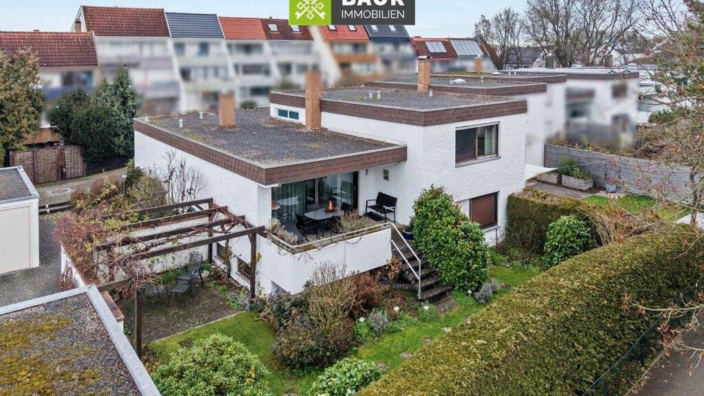 Dieser außergewöhnliche Split-Level-Bungalow aus dem Jahr 1979 befindet sich auf einem 448 m² großen Grundstück in ruhiger Lage von Neu-Ulm-Gerlenhofen. Mit rund 149 m² Wohnfläche, verteilt auf zwei Geschosse und vier clever versetzten Ebenen, bietet das Haus ein abwechslungsreiches Wohngefühl, das Offenheit, Struktur und vielseitige Nutzungsmöglichkeiten harmonisch miteinander verbindet. Durch den separaten Zugang im Untergeschoss eröffnen sich zudem flexible Optionen für Gäste, Homeoffice oder eine teilautarke Nutzung. Zwei Einzelgaragen runden das Angebot ab. Ebenen im Überblick