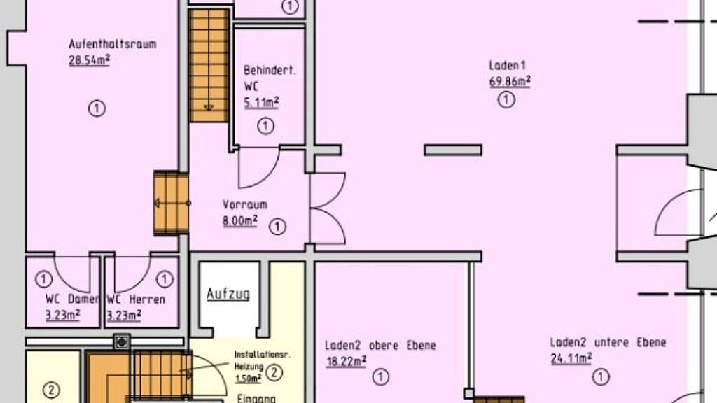Zudem sind getrennte Damen- sowie Herren- WCs, ein separates behindertengerechtes WC, einen Büro- und Aufenthaltsraum, sowie ein Untergeschoss mit ca. 9,26 qm, welches sich hervorragend als Lagerraum anbietet, vorhanden.