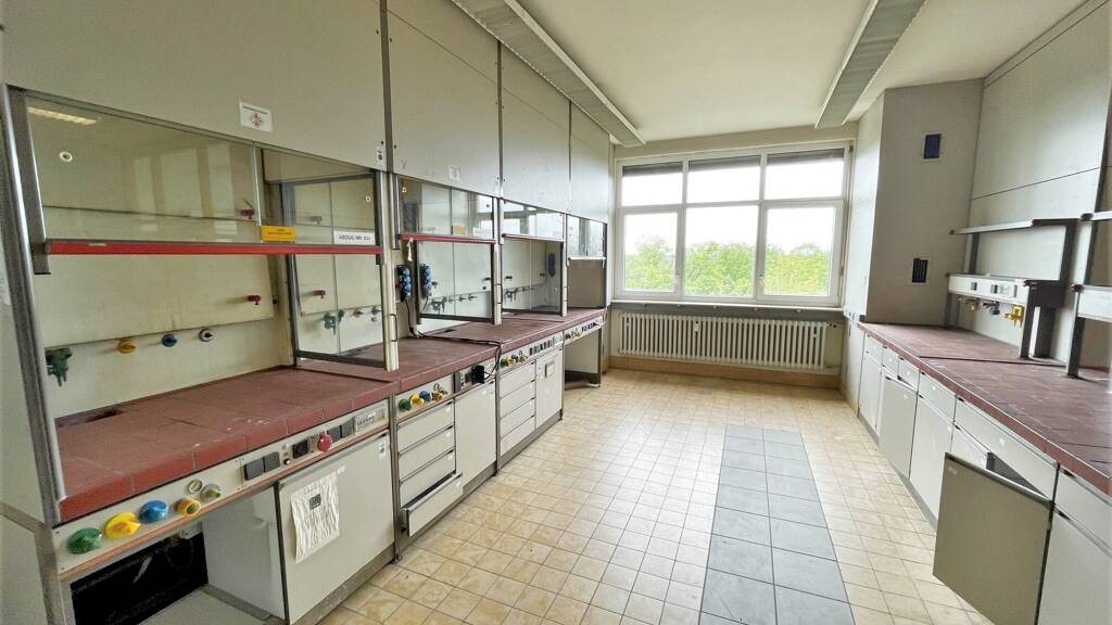 Ausgestattete Laborflächen an bekanntem Industriestandort: Es können ca. 460 m² Laborflächen, etwa hälftig, im 3. Obergeschoss des Laborgebäudes auf dem TRIWO-Industriepark kurzfristig angemietet werden. Die Räumlichkeiten sind mit Labortischen sowie Digestorien ausgestattet. Der Boden ist gefliest. Wasseranschlüsse sind vorhanden. Es liegen auch bereits einige Gasanschlüsse im Objekt, die mitgenutzt werden könnten. Das Gebäude ist an das Glasfasernetz angebunden. Es können auch Büroflächen angemietet werden