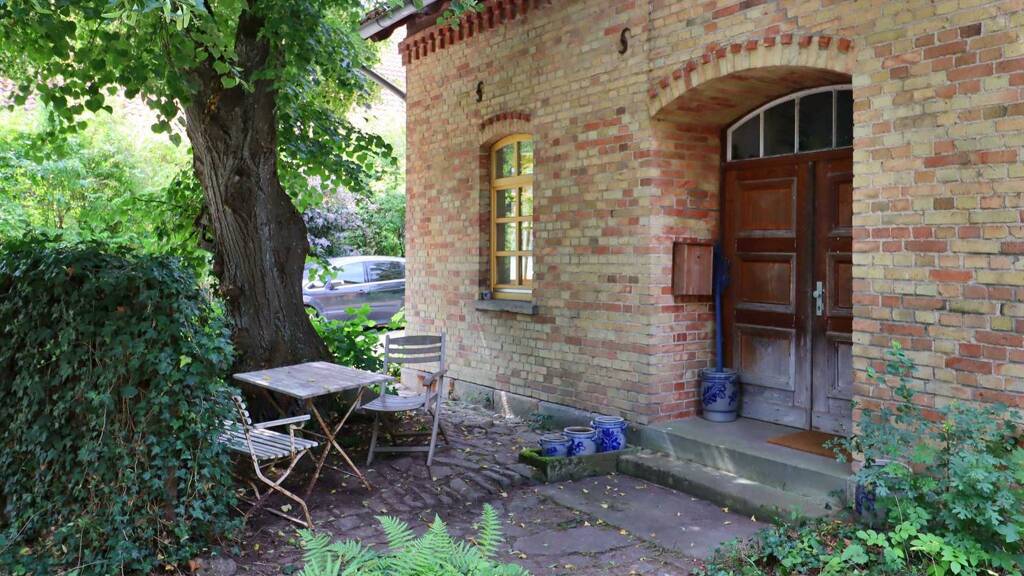 Schon beim Betreten des Hauses durch den zweiflügeligen Haupteingang mit Ziegelbogen spüren Sie den besonderen Charme. Sie gelangen über eine geflieste Diele in die helle, südorientierte "Stube", die durch offenes Fachwerk schon den ersten Blickfang bietet. Im hinteren Teil des Hauses liegen Küche und Bad mit Walk-In-Dusche. Zur Rechten befindet sich das Atelier mit eigenem Zugang zum Hof.