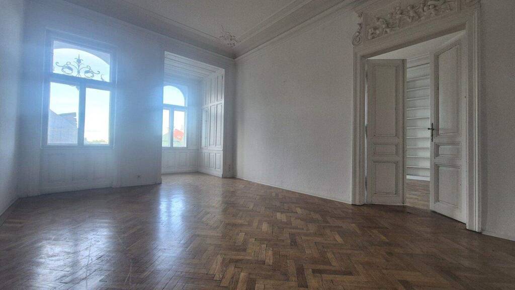 Die Wohnung hat viel Potential und lässt sich mit einer durchdachten Sanierung und Adaptierung in eine luxuriöse Altbauwohnung verwandeln.