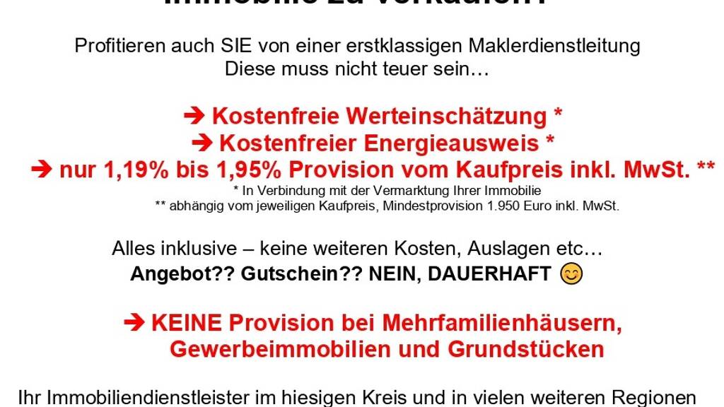 Die hälftige Nachweis-/ Vermittlungsprovision für den Käufer beträgt 1,79% (inkl. MwSt.) vom Kaufpreis.