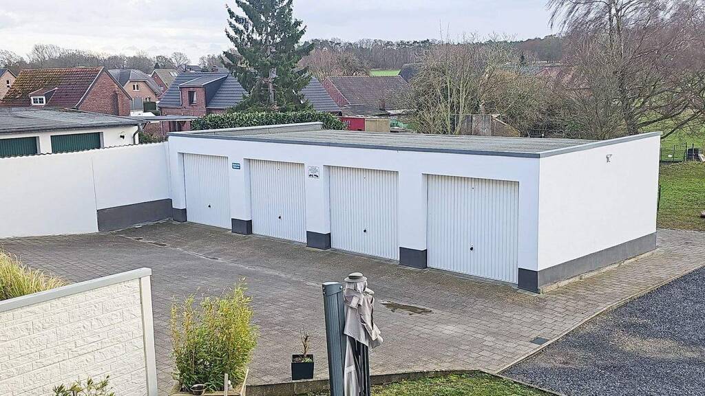 Die auf den Fotos zu sehenden Garagen befinden sich links neben der Häuserreihe und sind von dort aus bequem erreichbar. Eine der Garagen - die linke Einheit - kann zusätzlich für 60 € monatlich angemietet werden.
