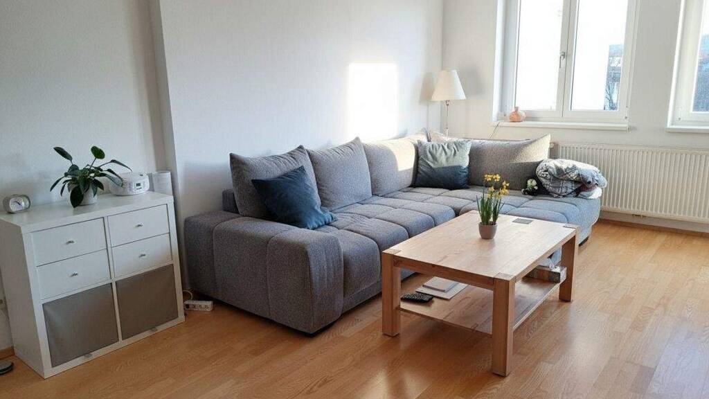Vom geräumigen Wohnzimmer aus gelangen Sie direkt auf den schönen Balkon - der perfekte Ort, um die Seele baumeln zu lassen und den Ausblick zu genießen.