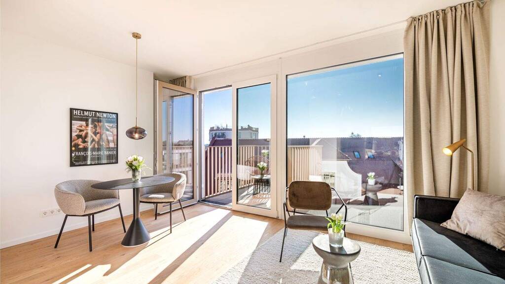 Diese lichtdurchflutete 1-Zimmer-Wohnung befindet sich im 6. Obergeschoss eines Neubaus, der Teil des neuen Premium-Quartiers "Kupa" ist. Den Bewohnern steht ein wegweisendes Sharing- und Service-Konzept zur Verfügung. Dieses umfasst ein Concierge-Angebot, einen E-Bike- bzw. Lastenrad-Mietservice, Carsharing, einen Co-Working-Space, eine individuell buchbare Küchen-Lounge, ein Paketbox-System und weitere Annehmlichkeiten. Ein Highlight ist die gemeinschaftlich genutzte Dachterrasse mit atemberaubendem Panoramablick bis zu den Alpen, die sich nur ein Stockwerk über den angebotenen Apartments befindet.
