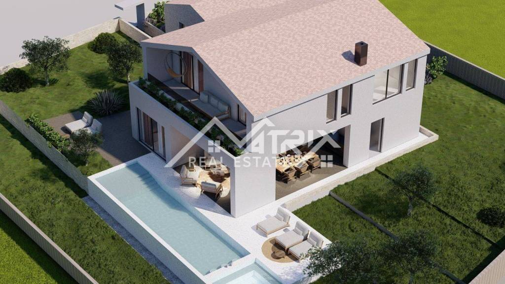 Baugrundstück im Herzen von Tinjan mit einer gültigen Baugenehmigung aus dem Jahr 2024 ermöglicht den sofortigen Baubeginn. Das gesamte Grundstück erstreckt sich über 1.153 m² und bietet eine perfekte Gelegenheit, eine luxuriöse Villa mit Pool und Garage nach einem bereits genehmigten Projekt zu errichten.
