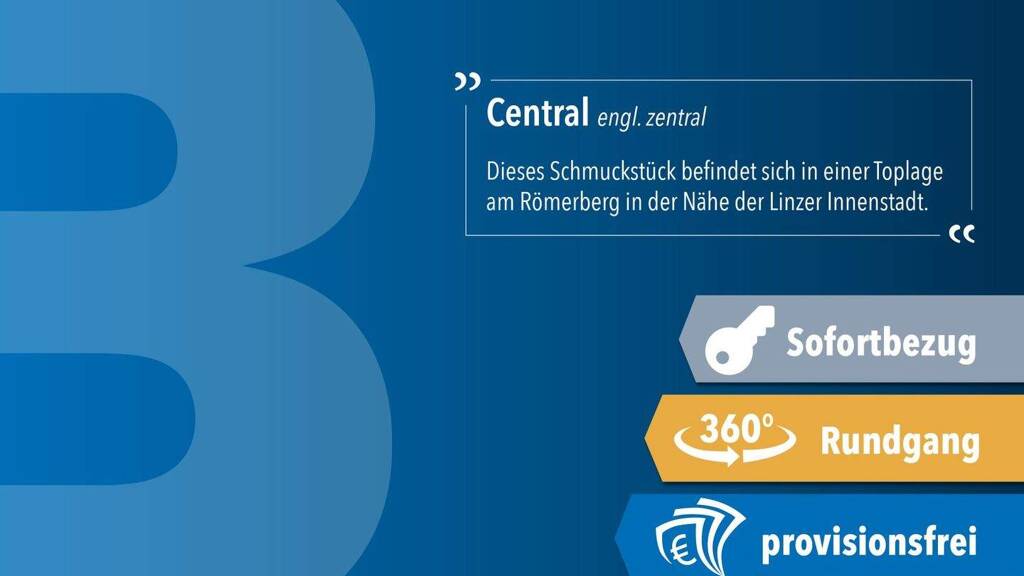 Dieses Schmuckstück befindet sich in einer Toplage am Römerberg, in der Nähe der Linzer Innenstadt. Eine gut durchdachte Raumaufteilung zeichnen das Objekt besonders aus.