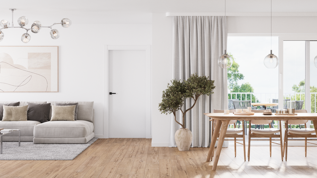 Alle Wohnungen sind mit großzügigen, modernen und offenen Grundrissen sowie mit großen Fensterflächen für helle und lichtdurchflutete Räume geplant. Die Innenräume werden mit wertigen Materialien wie z. B. Echtholzparkett, Feinsteinfliesen sowie Fußbodenheizung ausgestattet. Bei der Badausstattung (Fliesen und Sanitär) werden Produkte von SCALIDO eingesetzt. Damit bietet Ihr neues Zuhause alles, was man für ein schönes Wohngefühl benötigt.