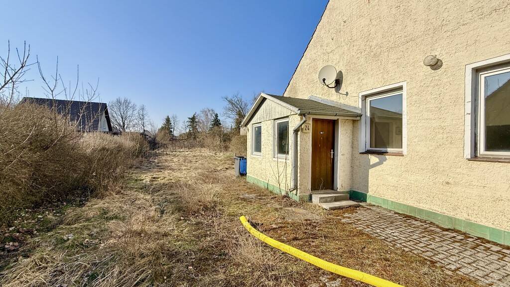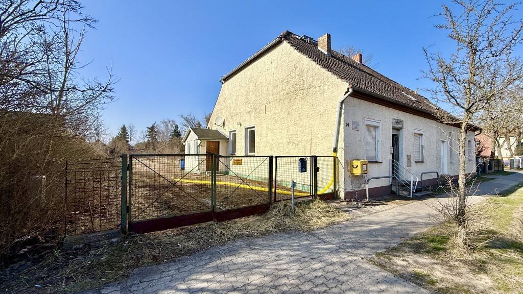 Diese Doppelhaushälfte aus ca. dem Jahr 1900 befindet sich auf einem großzügigen Grundstück mit einer Fläche von etwa 1.237 m² im Oranienburger Ortsteil Friedrichsthal. Die Immobilie verfügt über eine Wohnfläche von rund 98 m² und bietet aktuell eine Aufteilung in Wohn- und ehemalige Gewerbeflächen mit getrennten Eingängen.