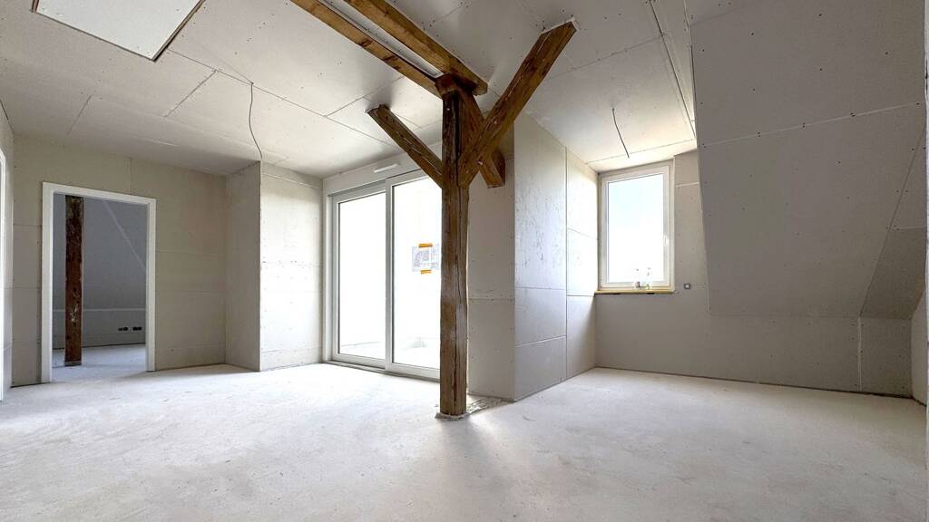 Die ehemalige Zigarrenfabrik wird im Zuge der Erschließung des Neubaugebiets "Neuländ II" saniert und erweitert. Die Wohnung Nr. 20 befindet sich im Dachgeschoss, im sanierten Altbau.