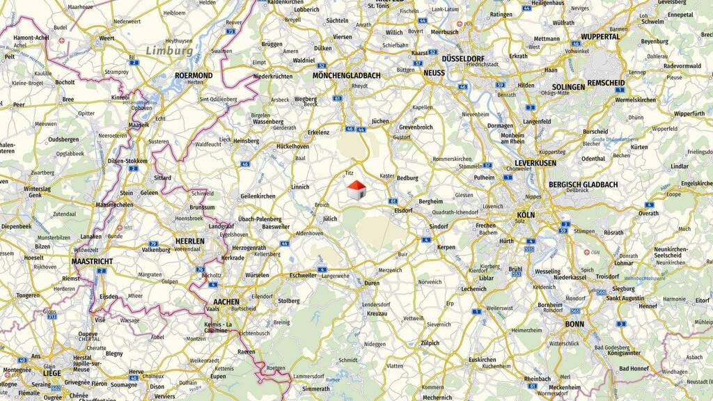 Der Ortsteil Rödingen gehört zur Gemeinde Titz im Kreis Düren, Nordrhein-Westfalen mit aktuell ca. 1.350 Einwohnern. Die Lage ist ausgesprochen verkehrsgünstig im nördlichen Kreis Düren eingebettet. Nördlich von Bedburg und Grevenbroich, östlich von Jülich, südlich von Düren und westlich von Köln und Aachen. Die Region um Titz wurde bereits im Mittelalter urkundlich erwähnt; der Hauptort Titz ist seit 1166 historisch belegt. Kulturelle Highlights vor Ort sind die LVR-Kulturhaus Landsynagoge Rödingen, das als Veranstaltungsort dient und die katholische Kirche St. Kornelius, die als neugotisches Bauwerk aus dem 19. Jh. das Ortsbild prägt. Rödingen verfügt über eine aktive Dorfgemeinschaft mit Vereinen wie dem SV 1919 Rödingen-Höllen für Fußball und weiteren Freizeit- und Sportangeboten. Ein Kindergarten vor Ort sowie weiterführende Schulen, zusätzliche Kinderbetreuung, Ärzte, Apotheken und umfassende Einkaufsmöglichkeiten befinden sich im nahen Jülich sowie in Düren und Bedburg - alles schnell erreichbar per Auto oder Bus. Der öffentliche Personennahverkehr (ÖPNV) wird über den regionalen Busverkehr (u. a. Linien des Rurtalbusses) gewährleistet, der Rödingen mit Titz, Jülich und den umliegenden Orten verbindet. Die Lage bietet gute Verkehrsanbindung über die Bundesstraße und die A44, die A4 sowie die A61.