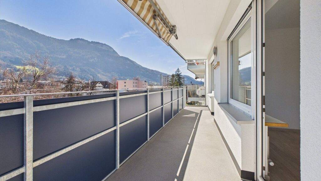 Diese großzügige und hochwertig renovierte 3-Zimmer-Wohnung befindet sich im 5. Obergeschoss eines gepflegten Mehrparteienhauses in Hohenems und ist bequem mit dem Lift erreichbar. Die erhöhte Lage bietet einen beeindruckenden Ausblick über ganz Hohenems und das umliegende Rheintal und sorgt für ein besonders angenehmes Wohngefühl.