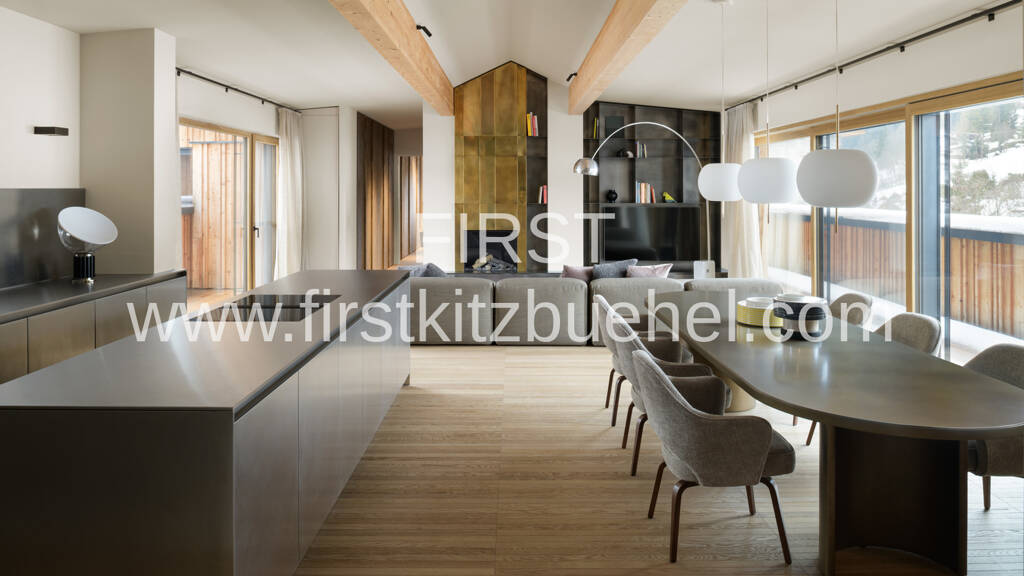 Das Penthouse lässt keine Wünsche offen. Das geschmackvolle Interieur Design mit Gaskamin wurde von den Innenarchitekten STORAGEMILANO entworfen und vereint Gemütlichkeit mit zeitloser Eleganz zu einer Einheit voll alpinem Chic. Mir der Bulthaup Küche erleben Sie beim Aufbewahren, Vorbereiten und Kochen Leichtigkeit und Gelassenheit. Die modernen Designermöbel und hochwertige Einbauten bieten internationales Flair mit viel Stauraum. Die exklusive Badezimmerausstattung mit maßangefertigten Einbauten, Verglasung mit Rauchglas und einer Sauna verwandeln den Masterbereich zu einer Ruheoase.
