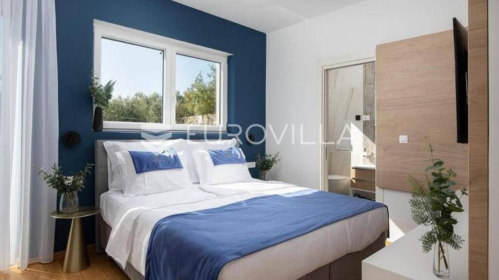 U samom srcu Medulina smjestila se ova samostojeca villa sa svojih raskosnih 340 m2 stambene povrsine kvalitetno rasporedenih na tri etaze. Udaljenost od mora je svega par metara. Moderna vila s lijepim, prirodom stopljenim privatnim bazenom koji se moze po potrebi i grijati te tako koristiti tijekom cijele godine smjestena na najjuznijem dijelu Istre dom je iz snova koji oduzima dah! Cijela vila rasporedena je na tri etaze. Podrumski je dio predviden i osmisljen kao zona za rekreaciju i odmor te se sastoji od wellness zone s vlastitim lezaljkama za opustanje, spa zonea sa saunom i jacuzzijem, toaleta. Unutrasnje stubiste vodi do prizemlja gdje dominira otvoreni dnevni boravak s velikom sofom i TV-om, prostor za sjedenje i blagovaonica te potpuno opremljena kuhinja jednostavnih i elegantnih linija, izlaz na natkrivenu terasu i bazen, pogled na more udaljeno samo par koraka, kupaonom. U prizemlju se takoder nalazi igraonica sa sah kutkom za igru te stolnim nogometom i pikadom. PlayStation 5 pruza mogucnosti za zabavu za malu i veliku djecu, dok se vrtu vile nalazi stol za stolni tenis za aktivnu igru na otvorenom. Na prvom katu smjestilo se 5 elegantnih spavacih sobe svaka sa svojom kupaonom. Ono sto impresionira na prvi pogled su velike staklene stijenke i pogled na more, kao i na borovu sumicu. U vecernjim satima zalasci sunca koji se prelijevaju na povrsini mora ostavljaju bez daha. Osjecaj da je cijeli prostor smjesten u samom moru. Cjelokupan prostor ville je klimatiziran, sistem dizalica topline, podno grijanje kroz cijelu villu. Cjelokupni interijer pomno je i kvalitetno osmisljen i izraden sto se primjecuje na svakom pojedinacnom elementu ville. Za vise informacija o ovoj raritetnoj villi na jedinstvenoj lokaciji slobodno nas kontaktirajte.... Vise na eurovilla.hr, ID: 745883