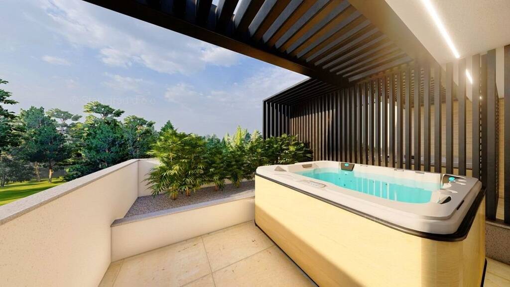NEUBAU - INSEL KRK!! In der Stadt Krk, in guter Lage, 300 m vom Meer entfernt, steht eine Wohnung in einem hochwertigen Neubau zum Verkauf. Dieses wunderschöne Luxusapartment erstreckt sich über drei Etagen. Im Erdgeschoss gibt es einen Eingangsbereich, Küche, Esszimmer, Terrasse mit Zugang zum Garten, Toilette und eine Treppe, die in den ersten Stock führt. Im ersten Stock befinden sich zwei Schlafzimmer, eines davon mit Zugang zu einem Balkon, ein Badezimmer und eine Treppe zum zweiten Stock. Im zweiten Stock gibt es eine Galerie mit Bad und eine Terrasse mit Whirlpool. Diese außergewöhnliche Wohnung wird mit erstklassiger Ausstattung wie Fußbodenheizung, Klimaanlage und einem Smart-Home-System ausgestattet. Dieses funktionale Konzept ermöglicht den neuen Eigentümern einen Blick auf die Stadt Krk und das Meer. Dem Eigentümer dieser Wohnung stehen ein Garagenplatz und ein Außenstellplatz zur Verfügung. In der Nähe dieser Immobilie gibt es alle notwendigen Einrichtungen für einen angenehmen Urlaub: Strand, Geschäft, Promenade. Im Preis ist die Mehrwertsteuer enthalten, was bedeutet, dass der Käufer von der Zahlung jeglicher Steuern befreit ist und der Verkäufer saubere Eigentumsdokumente garantiert. Besuchen Sie uns auf der Insel Krk und wir sorgen dafür, dass Sie die Zufriedenheit aller unserer Kunden spüren. Wenn Sie sich für uns entscheiden, unterstützt Sie die Agentur Stan Grad Immobilien gerne dabei, das Eigentum an der Immobilie sowie Strom-, Wasser- und Nebenkostenabrechnungen auf Ihren Namen zu übertragen. Der geplante Abschluss der Arbeiten ist Dezember 2023.