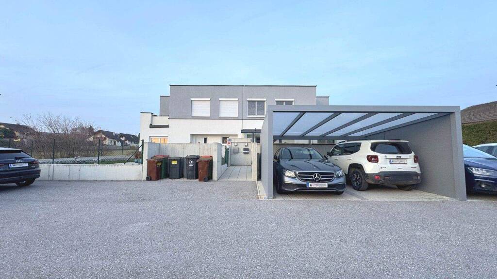 Das Objekt ist hochwertig und zeitlos ausgestattet. Großzügige Fensterflächen sorgen für helle Räume, alle Fenster sind zudem mit Jalousien ausgestattet - ideal für Beschattung, Privatsphäre und ein angenehmes Raumklima. Die Böden und Sanitärräume wurden mit modernen Materialien ausgeführt. Die Außenflächen umfassen einen gepflegten Garten sowie eine großzügige Terrasse im 1. Stock. Zwei überdachte Stellplätze im Carport gehören direkt zum Haus und bieten bequemes Parken.