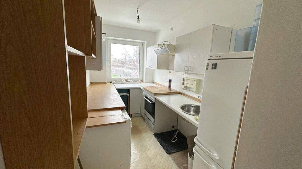 Die Küche ist praktisch geschnitten und bietet genügend Platz zum Kochen und Genießen. Das Badezimmer mit Badewanne rundet das Raumangebot ab und sorgt für zusätzlichen Komfort im Alltag.
