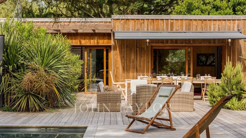 Eine Adresse für Kenner, ein diskretes Juwel des Luxus: Die Villa Opale gehört zu den exklusivsten Anwesen an der Spitze von Cap Ferret. Abgeschirmt von Blicken verkörpert diese seltene Mietvilla den zeitlosen, vertraulichen Geist der Halbinsel. Hier begegnen sich Ruhe und Raffinesse auf höchstem Niveau.