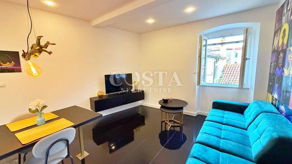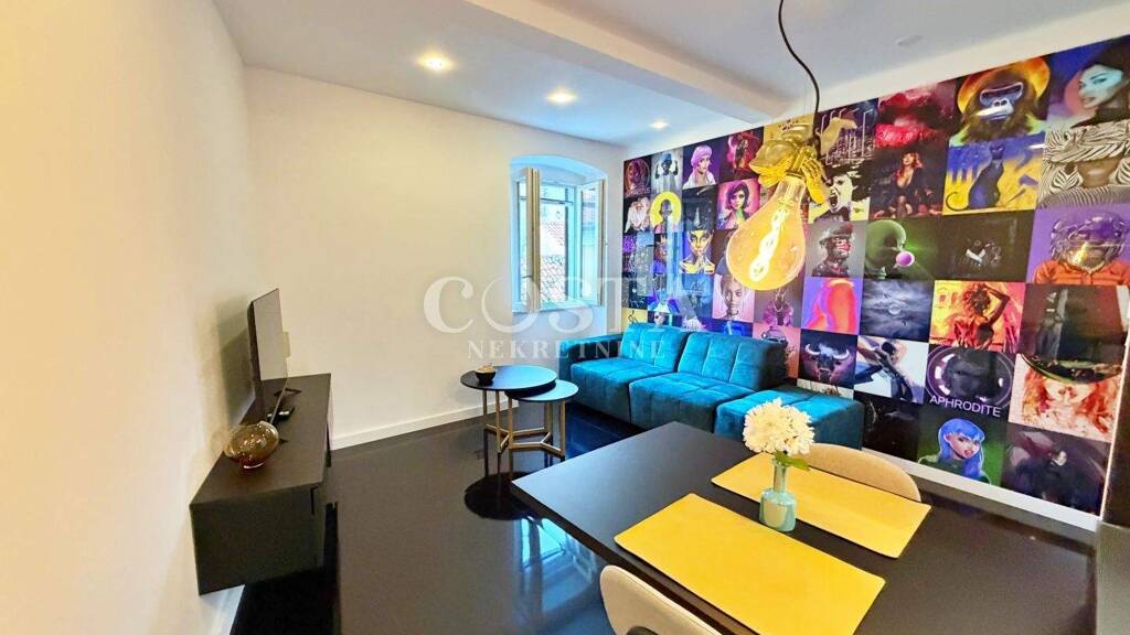 In Poluotok, Zadar, steht eine modern eingerichtete und komplett renovierte Wohnung zum Verkauf. Die 42 m² große Wohnung befindet sich im zweiten Stock eines dreistöckigen Wohn- und Geschäftshauses. Sie besteht aus einem Wohnzimmer mit Küche, einem Schlafzimmer, einem Badezimmer, einem Abstellraum und einer Terrasse. Die Wohnung ist klimatisiert und verfügt über Fußbodenheizung in jedem Zimmer. Im Zuge der Renovierung wurden die Boden- und Wandbeläge komplett erneuert, neue PVC-Fenster und -Türen mit Moskitonetzen eingebaut sowie moderne Möbel und Haushaltsgeräte installiert.