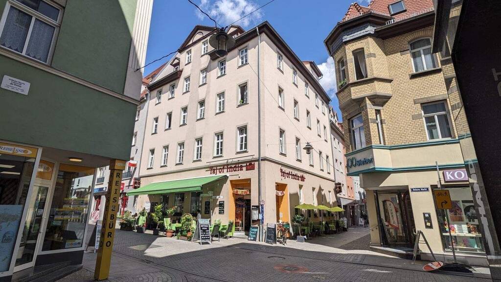 Das hier angebotene denkmalgeschütze Wohn- und Geschäftshaus befindet sich mitten im Stadtzentrum von Jena. Die ersten verfügbaren Unterlagen im Bauaktenarchiv sind aus dem Jahre 1876. Die unter dem Objekt vorhandenen Tonnengewölbe stammen aber aus weit früherer Zeit. Im Erdgeschoss sowie im 1. Obergeschoss befindet sich auf ca. 250 m² ein Indisches Restaurant. Im 2. und 3. Obergeschoss befinden sich 2 Wohnungen mit jeweils ca. 122 m². Im Dachgeschoss befand sich bis ca. 1996 eine weitere Wohneinheit welche aber im Zuge der umfangreichen Sanierungsmaßnahmen im gleichen Jahr nicht fertig hergestellt wurde. Daraus ergibt sich die Möglichkeit im Dachgeschoß eine zusätzliche Wohnfläche von ca. 80-90 m² auszubauen. Im Rahmen der grundhaften Sanierungsmaßnahmen im Jahr 1996 wurde das gesamte Objekt statisch ertüchtigt. Danach wurden ständig weitere Sanierungen durchgeführt. 2007 umfangreiche Dachsanierung, Fassadensanierung mit Vollwärmeschutz, Erneuerung der Elektroinstallation im EG. 2016 wurde die komplette Lüftungsanlage für die Gastronomie erneuert. 2022 Erneuerung der Gastherme im 2. OG.