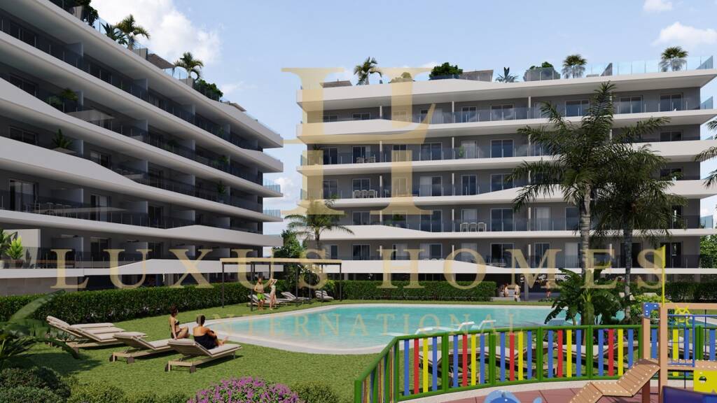 Unsere Agentur bietet Ihnen dieses Projekt, das aus drei Blöcken mit insgesamt 95 Immobilien besteht; Block 1 mit 35 Eigenschaften, Block 2 mit 25 Eigenschaften und Block 3 mit 35 Eigenschaften. Auf der 1. bis 4. Etage befinden sich 2- und 3-Zimmer-Wohnungen. Die Wohnungen im 5. Stock verfügen über ein privates Solarium mit unabhängigem internem Zugang zum Dach. Die Immobilien sind auch mit 2 und 3 Schlafzimmern verfügbar. Der Perimeter ist mit einer Betonmauer und Sicherheitsschlössern umschlossen. Es hat einen Fußgängerzugang von der Straße Venida de la Virgen und einen Eingang zur Eingangshalle des Gebäudes im Block 1 von der Avenida Tamarit. Die Residenz verfügt über Grünflächen, einen zugewiesenen Bereich für Fahrradabstellplätze und einen Kinderspielplatz. Der Pool verfügt über einen Strandzugang, Duschmöglichkeiten und eine große Holzpergola. Es gibt begrünte Bereiche mit Palmen und anderer Vegetation, die alle beleuchtet sind. Im zentralen Teil des Pools befindet sich ein flacherer Bereich, in dem sich die Wasserbetten befinden.
