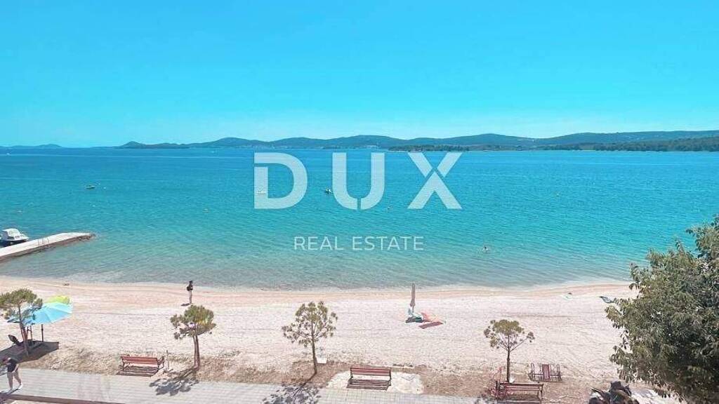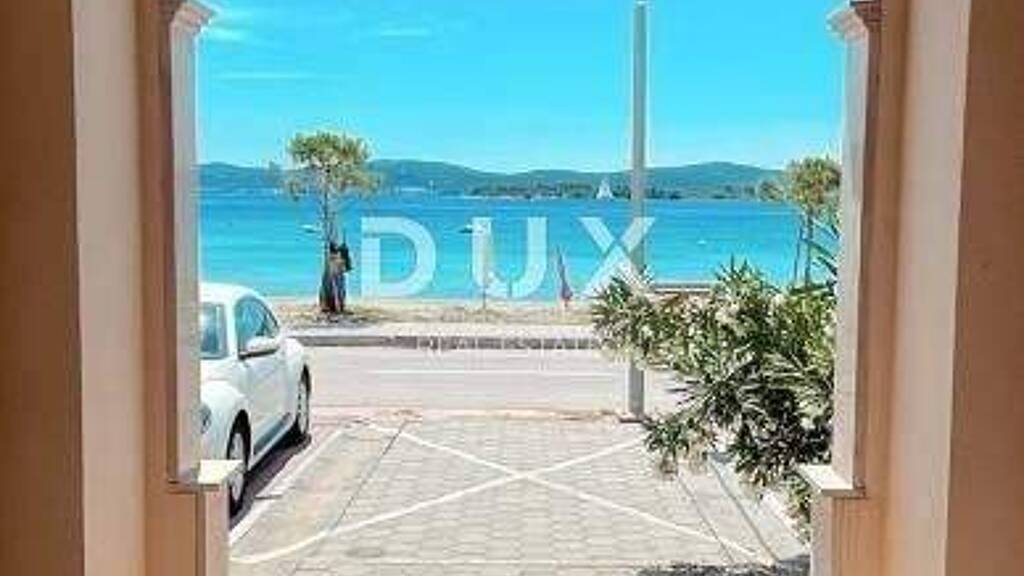 An diesem wunderschönen Ort steht eine Wohnung zum Verkauf, in einzigartiger Lage, in der ersten Reihe zum Meer. Vor der Wohnung ist ein Strand und eine Promenade. Das Besondere an diesem Anwesen ist eine 30m2 große Terrasse oberhalb des Strandes mit wunderschönem Blick auf das Meer, die Insel Pasman, Biograd und die umliegenden Inseln. Die Terrasse ist überdacht und hat abnehmbare Seitenwände mit Fernbedienung, die einen verdunkelten Teil zum Sonnenschutz und einen transparenten Teil bei schlechtem Wetter zum Schutz vor Regen und Kälte haben und eine schöne Aussicht bieten. Neben der gemeldeten Quadratmeterzahl in der Wohnung gibt es auch eine Galerie (die nicht in der Quadratmeterzahl der Wohnung aufgeführt ist) mit zwei Schlafplätzen, die kürzlich modernisiert wurde. Die Eingangsgalerie ist nicht überdacht, mit der Möglichkeit, sie zu schließen und in einen anderen Teil des Wohnraums zu verwandeln. Die Wohnung befindet sich im Dachgeschoss des Gebäudes, im dritten Stock. Die Gesamtfläche besteht aus einer Wohnfläche von 36,74 m2, die mit der vorderen Außengalerie, der Halbloggia und dem Parkplatz 73,92 m2 beträgt + Galerie, die nicht in der Fläche gezeigt wird, es werden insgesamt 80 m2 nach Koeffizient mit eingetragenem und nicht eingetragenem Teil verkauft voll möbliert, außer Sachen.