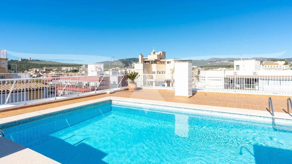 Die Wohnanlage überzeugt durch hochwertige Gemeinschaftsbereiche. Auf dem Dach des Gebäudes befindet sich eine Sonnenterrasse mit beeindruckendem Panoramablick über die Dächer Palmas bis hin zur Bucht - ein exklusiver Rückzugsort mitten in der Stadt. Zusätzlich steht ein Gemeinschaftspool zur Verfügung.