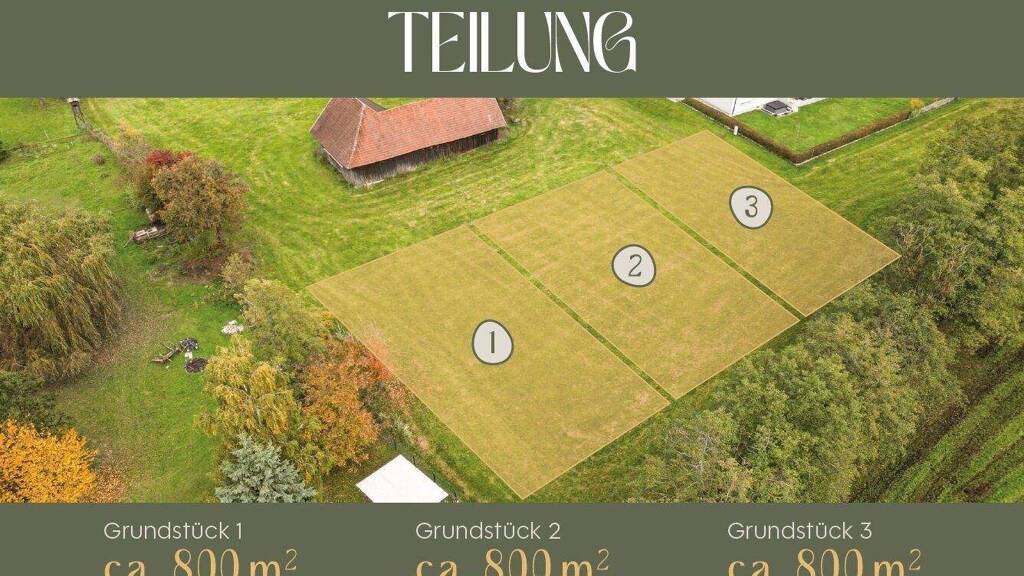 Das Grundstück ist bereits an das öffentliche Wasser- und Kanalnetz angeschlossen, was eine sofortige Bebauung deutlich vereinfacht. Die Erschließung durch eine bestehende Gemeindestraße ist gesichert, die Zufahrt ist problemlos möglich. Eine Besonderheit dieses Angebots besteht darin, dass das Grundstück - je nach individuellem Bedarf oder Projektidee - in mehrere kleine Bauparzellen geteilt werden kann. So eignet sich diese Liegenschaft nicht nur für die Realisierung eines großzügigen Einfamilienhauses oder eines Mehrgenerationenhauses, sondern auch hervorragend für Bauträger oder Investoren, die mehrere Wohneinheiten schaffen möchten.