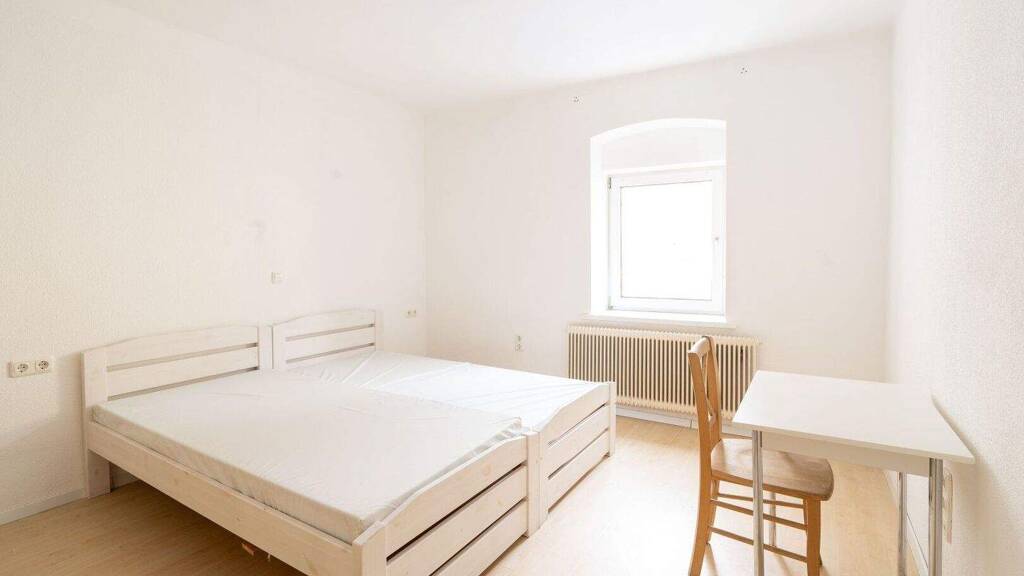 Zur Vermietung gelangt ein helles Zimmer inklusive großem Badezimmer mit Badewanne und Dusche. Die Toiletten sind getrennt. Der Mietpreis beträgt EUR 490,-.